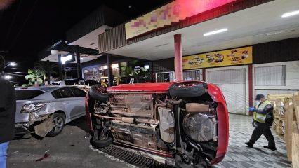 Condutor com sinais de embriaguez é preso após tombar veículo e atingir carro estacionado em Ouro